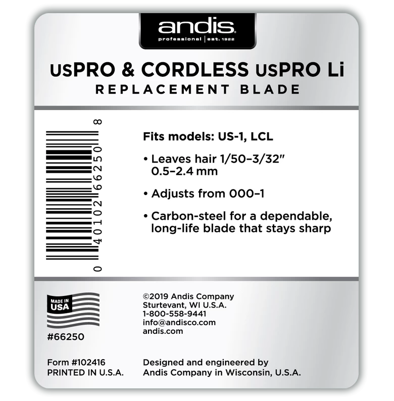 • Carbon steel for long edge life. • Polished finish. • Fits US-1 model clippers.
