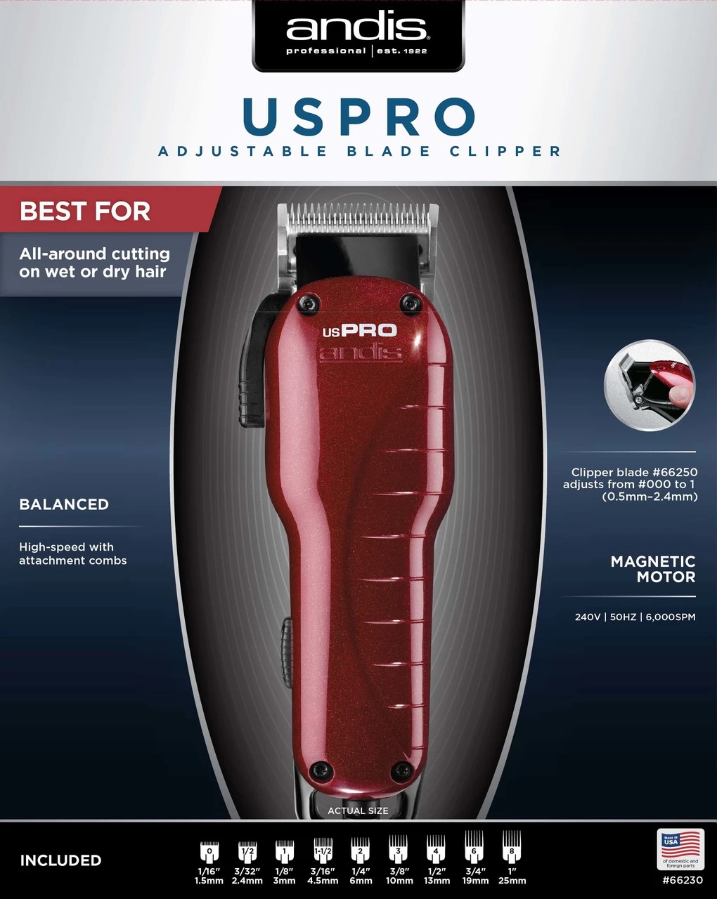 Single lever adjusts clipper blade from fine to coarse #000-#1 (0.5mm – 2.4mm)
