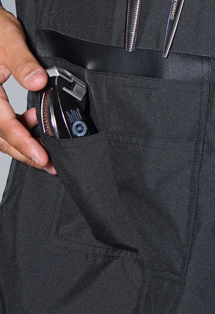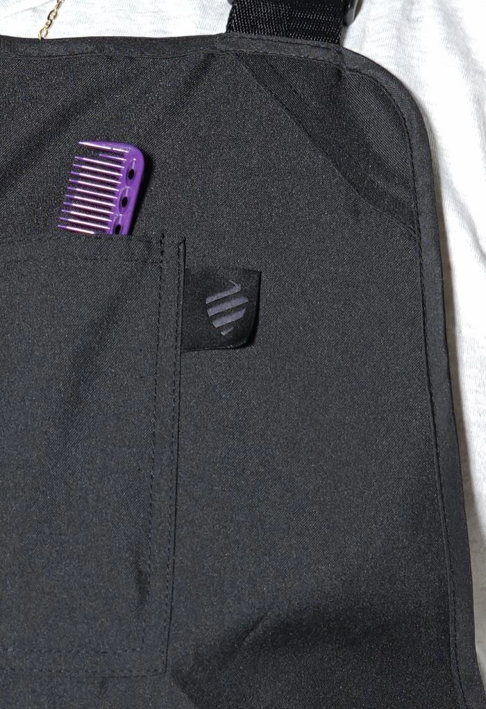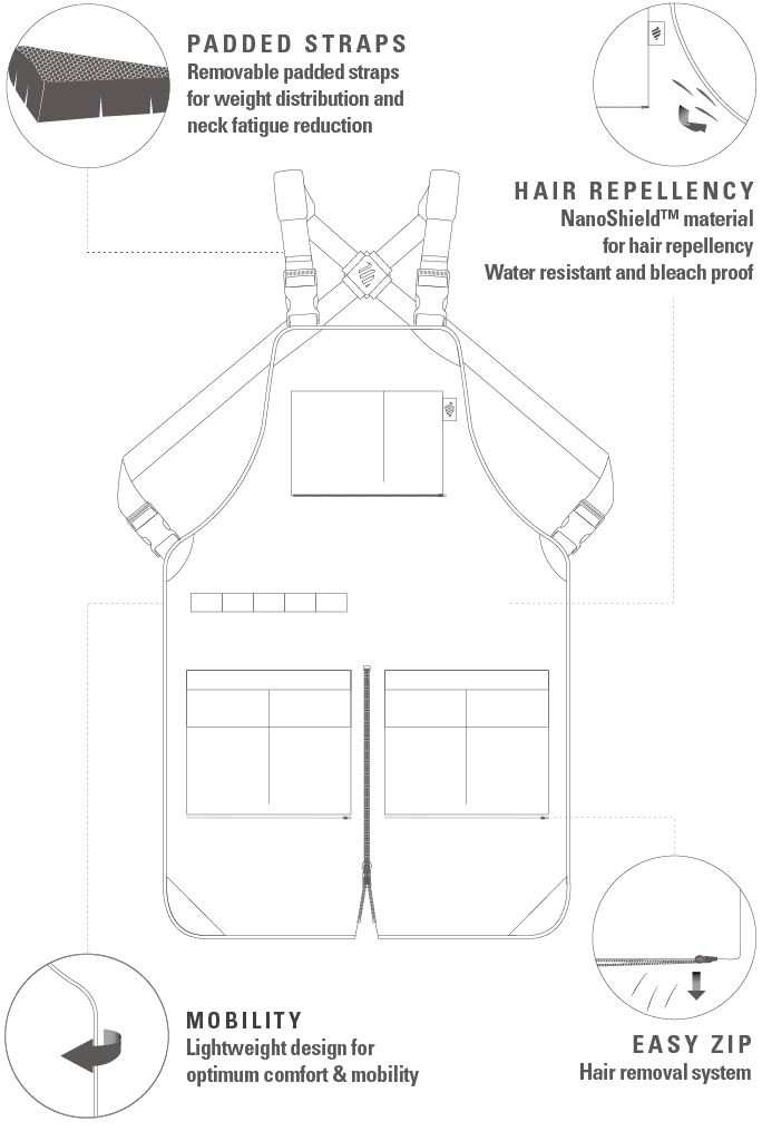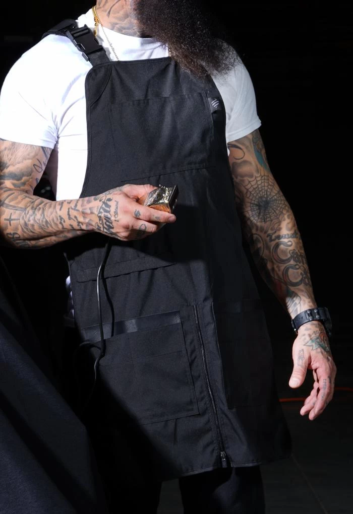 The Barber Apron features water-resistant and bleach-proof material, protecting clothing from spills and hair splinters.
