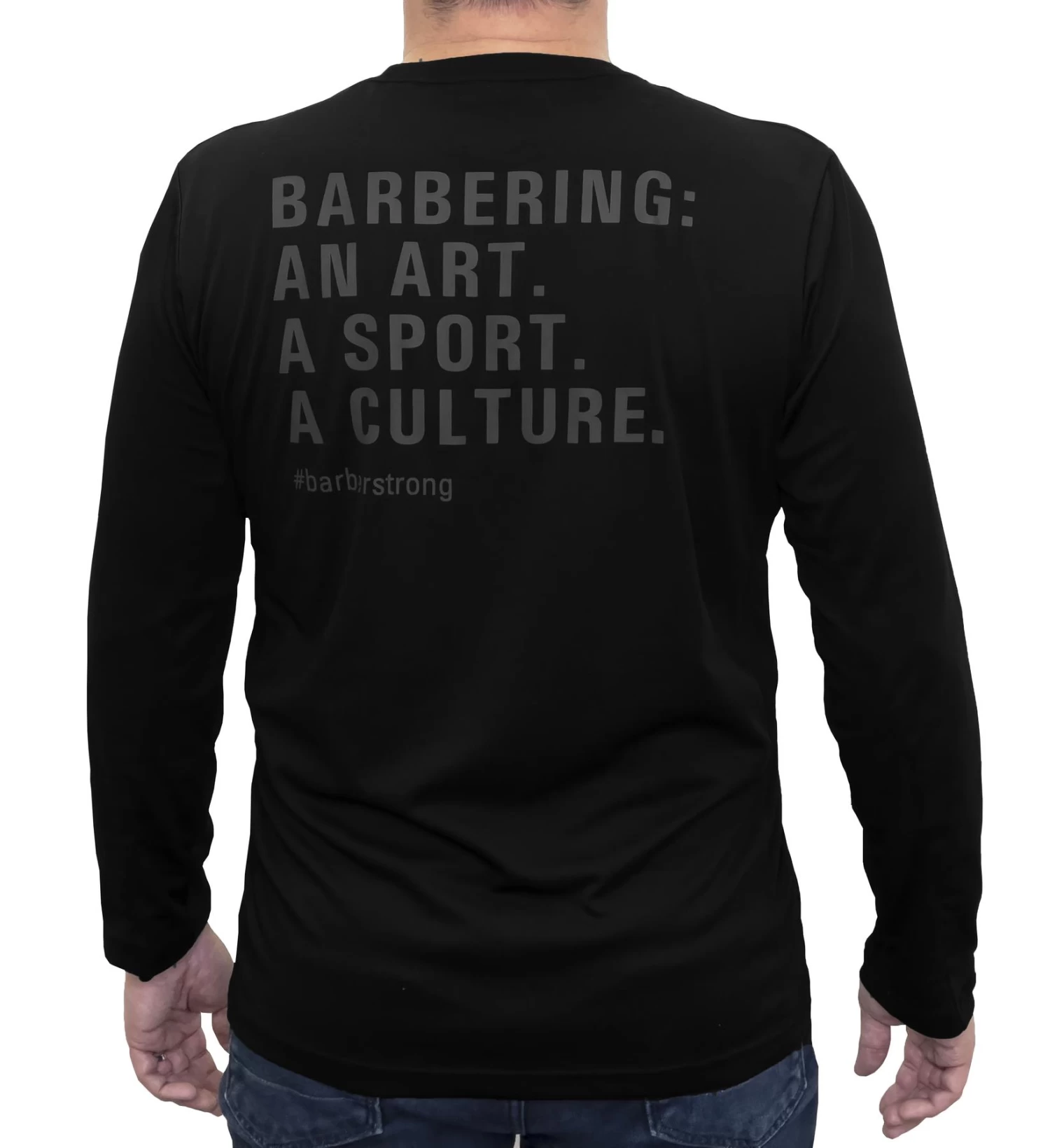 The Barber Tech Tee (longsleeve) features the same STRONG benefits of The Barber Polo, now in a collarless option.