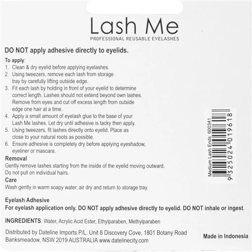 Lash Me Professional Reusable Eyelash Ends let you choose where you need extra length or volume. Select your perfect size or choose an assorted set so you have the freedom to create multiple looks without fiddling around and cutting each lash to size. Professional grade adhesive included.