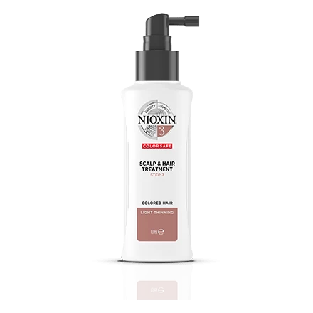 Nioxin’s Scalp & Hair Treatment System 3 for colored hair with light thinning is the final step of a three part Nioxin regimen, specially formulated to refresh the scalp and increase hair volume.