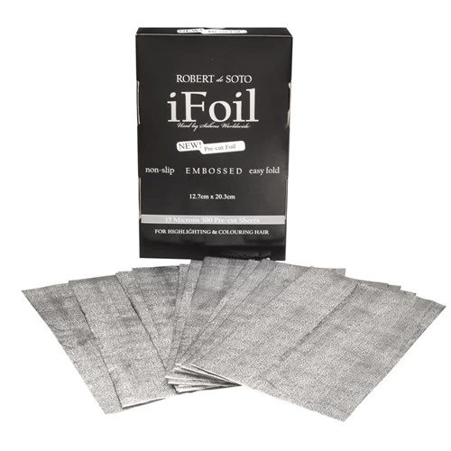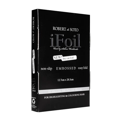 Have you ever noticed that pre-cut foil has tissues between each sheet? Not any more! Robert de Soto does away with the tissues making it all the more easy to use for a busy salon. Solution: non-slip embossed foil! 300 sheets.