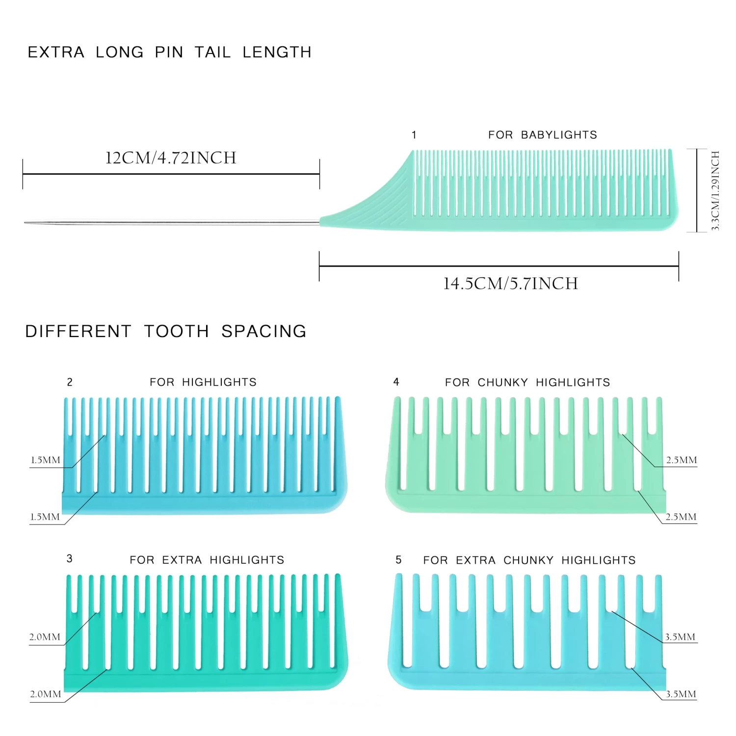 The all NEW Vellen Hair Premium Tail Comb 5 Set in Green/Blue/Mint includes: